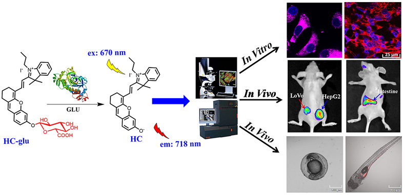 Highly specific near-infrared fluorescent probe for the real-time detection of β-glucuronidase in various living cells and animals. Anal. Chem., 2018, 90, 3276, DOI: 10.1021/acs.analchem.7b04813 |